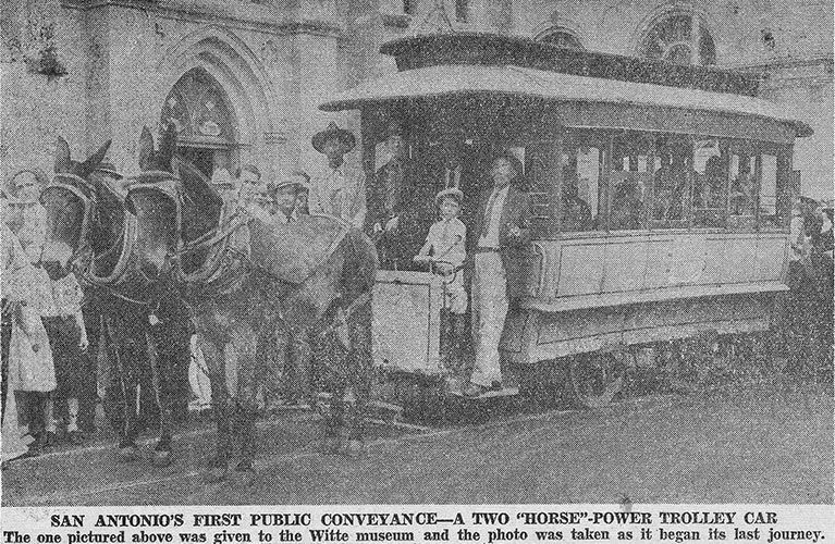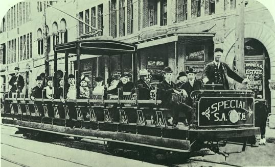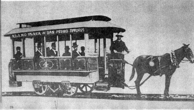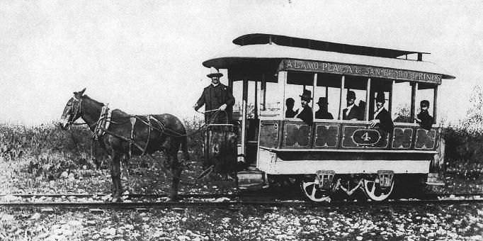 In the planning stage for several years, mule drawn streetcars begin service from Alamo Plaza to San Pedro park and the new Southern Pacific railroad station.