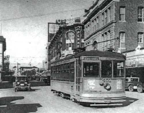 A major consequence of the new streetcar service was the development of Houston Street as the major shopping district in San Antonio. It used to be Commerce Street but the thoroughfare was too narrow, crooked and overcrowded to allow streetcars to be added. Houston Street, by comparison was brand new and undeveloped. Every line ran up and down its increasingly valuable length which was soon filled with gleaming high rise department stores of all kinds, Delivery was very popular back then before people had cars, so people could hop off the streetcar, do their shopping and return home very easily. Houston Street was one of the few places in the city that had double tracks, to allow travel in both directions. At the speed of a mule, hopping on and off became something of a pastime in itself. In 1881, a new line operated by a different company was built to serve the original International & Great Northern railroad station at the corner of Commerce Street and Medina. Passengers were taken right o the front door at junction with Houston Street. A line down South Flores Street to the San Antonio & Aransas Pass station at the junction with S. Alamo followed in 1884. San Antonio streetcars were electrified in 1890, following the completion of San Antonio's first large power generating station. Speeds doubled to 20 MPH and the cars doubled in size, from 16 seats to 32. The first run of an electric streetcar in San Antonio went from downtown to the International Fairgrounds - now Roosevelt Park - on September 26, 1890. Service to the Missouri Kansas & Texas station opened in 1917 had been easy to provide as it faced onto Flores at the corner of Durango, the same line that served the San Antonio & Aransas Pass railroad station.