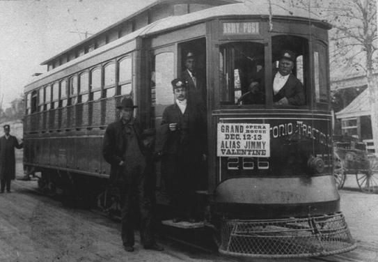 San Antonio streetcar service began on June 27, 1878, just over one year after the first railroad, the Galveston Harrisburg & San Antonio, reached the city. The system would peak in 1926 at 90 miles of tracks. The cars were pulled by horses or mules until they were electrified in 1890. The very first route ran from Main Plaza to San Pedro Park. They would swap out mules at the terminus point. Mules had to be swapped out every mile when they pulled the older omnibuses along the unpaved roads since 1859. Soon an additional route was added, to the GH & SA railroad station located on North Austin Street and what is now known as Jones Street but was then called Grand Avenue for all the fancy houses that were built there after the tracks arrived. From Main Plaza you changed cars at the post office near the Alamo to go to the station. Real estate values soared along the line which traversed land which was essentially brush and scrub land until this time. Large lots that had struggled to get $75 - there wee only two houses built between downtown and San Pedro Park - soon were selling for around $500 and the area became the most desirable in the city. The first lines uses very lightweight rails and only thin wooden strip to keep them properly spaced apart, not actual heavy duty railroad ties. As a result, derailments were frequent. The system was soon called the GOP Line - Get Off and Push.