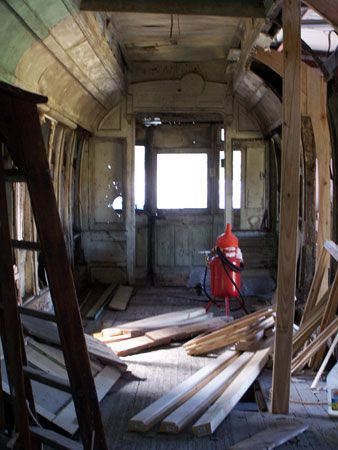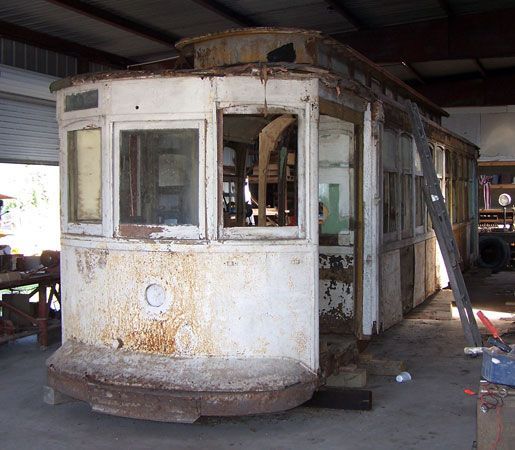 In 2012, almost by accident, some Texas Transportation Museum volunteers stumbled onto this amazing barn find: old San Antonio streetcar 205 partially restored in a shed near Boerne. It was know a few old streetcars were rotting away in a field on the outskirts of the city but someone has taken it upon himself to try to save one of them. It is a tall order, to say the least. Basically made of wood every piece is either rotten or eaten away by wood worm. What little metal is there is almost completely rusted away. The fate of the car at this point is in the air as the purchaser recently died, leaving a significant question mark as to what happens next.
