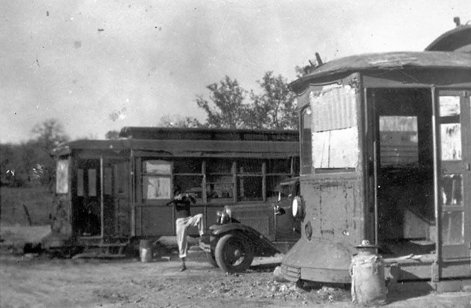 San Antonio Streetcar System Maps, PSA, Sheds and street-spraying work-car
