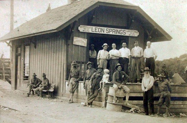 The San Antonio and Aransas Pass Railroad reached Leon Springs, approximately half way between San Antonio and Boerne in 1887. The stop was originally called Aue Station after one of the communities founders, who ran an inn catering to the stage coach trade which had opened for business in 1846. In 1906 the army acquires 17,273 acres near Leon Springs for training outside San Antonio's increasingly crowded city limits. The proximity of an under used railroad and plenty of land unsuitable for agriculture made it an ideal location for training with ever increasingly powerful artillery and, later, air planes. Camp Stanley and Camp Bullis survive to this day, though the railroad is long gone and Camp Bullis Road is closed for security reasons.
