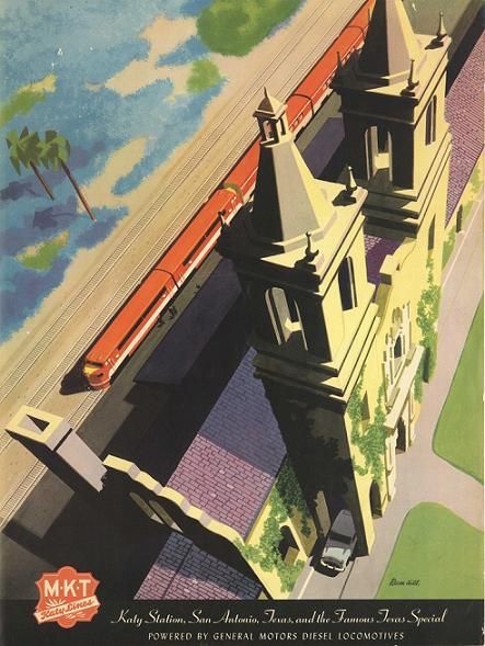 The MK&T builds its own line into San Antonio from San Marcos. It shares Sunset Station with the Southern Pacific. The depot is renamed "Union Station"