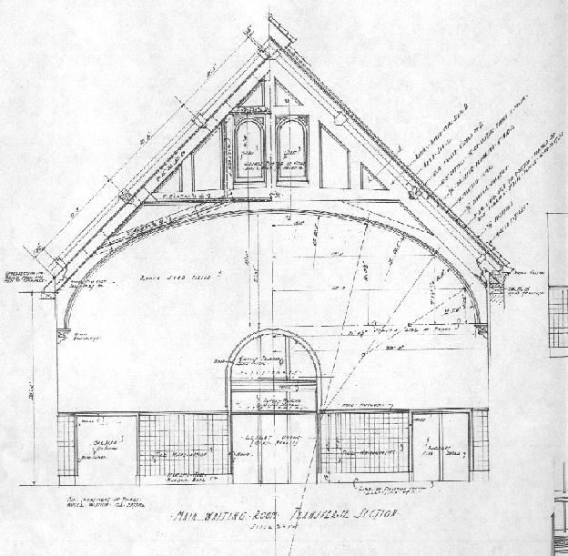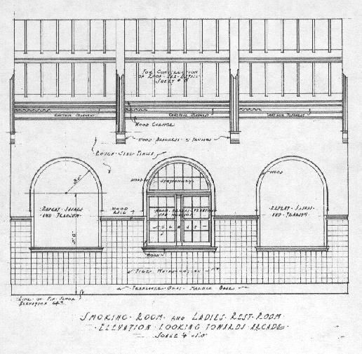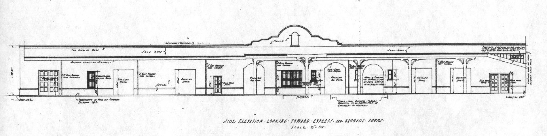 How Bruce Blalock, who owns and operates the Katy House B&B in Smithville, came to own the original and only full-size original blueprints of the San Antonio MK&T station in San Antonio is an amazing tale. A friend of his happened to be passing Katy's main offices in Denton, Texas, in 1988, when they were being ruthlessly cleared out following the sale of the railroad to the Union Pacific. Stuff Katy enthusiasts would pay dearly for today was being dropped into dumpsters via large plastic chutes installed at various upper-floor windows. Bruce's friend was able to simply walk through the chaotic scene, helping himself, almost at random, to anything he could see. One of the things he saved were these original drawings made by the architect in 1914. No other copies are known to exist. Before it was learned in a casual conversation that Bruce had them, a thorough search of historical and architectural archives in three cities yielded nothing.