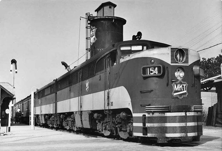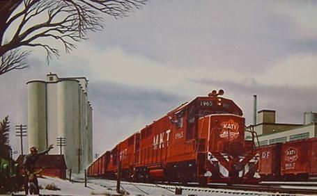 The last steam trains are phased out and all MK&T locomotives are diesel-electrics. The company adopts a bright red paint scheme.