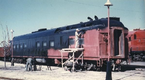 In 1966, the museum acquired a lot of rolling stock from the KATY yard, not all of it ex-MKT. The Santa Fe Cafe Observation Car 1511 would have a much better fate than its sister car, #1510, which was unceremoniously scrapped. After being put in service on main lines for TTM excursions (see also the Missouri Pacific page) it was transferred to the Texas State Railroad that runs between Rusk and Palestine. Caboose 835 was also sold and has just recently re-emerged in the hands of Bruce Blalock. The Clover Glade was kept for only a few years and never made it to our "new" site. Santa Fe Business Car 404, of course, did make it here and has been with us since our earliest day at our current location. (We've been here over 30 years but started off down town at the Pearl Brewery.) The McKeever has been with us a good long time as well, after fifteen years or so at a place on Lake Placid, near Seguin. Those were strange days. The railroads were desperate to get rid of their passenger cars. What vandals and scrap yards did not get to, time and weather have and much of what is out there is not worth having.