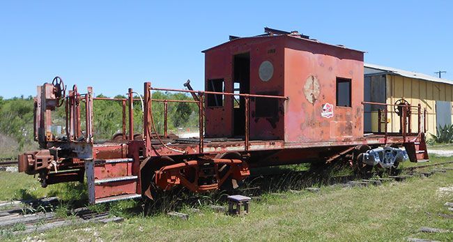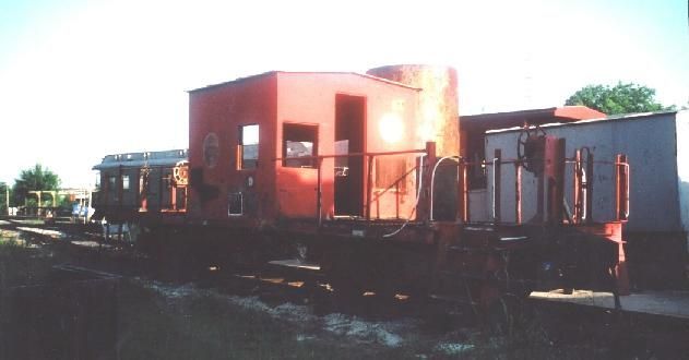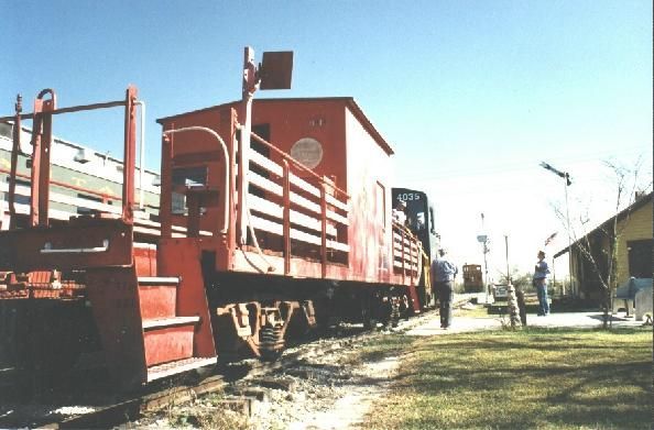 This is TTM's oldest caboose was originally built in 1919 as a box car and was rebuilt into its current configuration as a transfer caboose in 1952. Transfer cabooses are extremely basic. They lack the amenities of larger cabooses designed for long distance work, such as bunk beds, kitchens and toilets. They are designed for short haul work only, mainly moving freight and sometime passenger cars around yards and from one set of tracks to another. As such it is a basic shed on wheels with large open areas at both ends so the crew can see what's going on and their flag signals be seen from the locomotive cab where the engineer awaited instructions. Most transfer cabooses have bay windows, to improve the view from inside but this one does even have these. Transfer caboose 11919 was built and operated by the Missouri Pacific RR. This railroad, also known as MOPAC, owned three out of four of the cabooses at the Texas Transportation Museum. Once used a great deal by TTM, caboose 11919 is currently awaiting restoration.