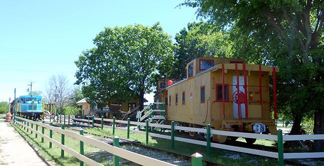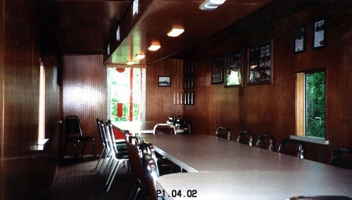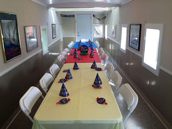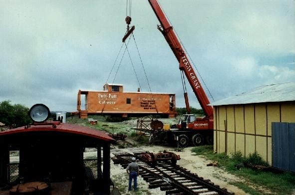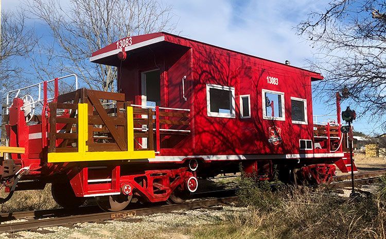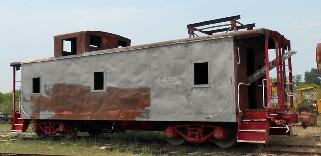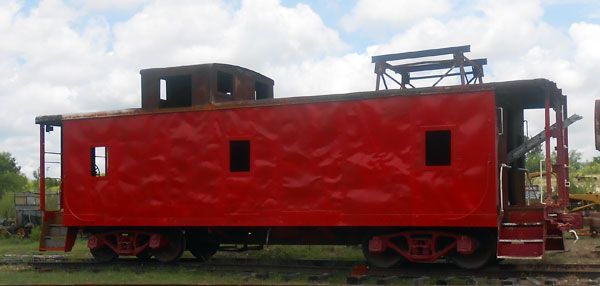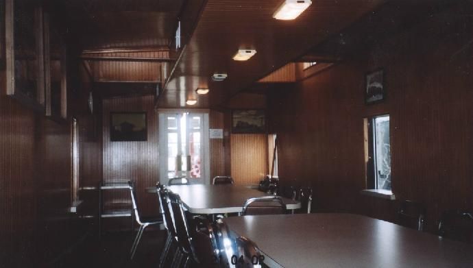 Former Missouri Pacific caboose 13430 is an offset cupola caboose. It was built by the railroad in its own shops around 1950, it is an all steel caboose, considered to be a big improvement over former cabooses that had a wooden structure over a metal frame. There were various different styles of caboose built for different purposes. This one was designed for use on long distance trains. It is very spacious. It had areas for bunk beds, a small galley, and a toilet. Many of its windows were sealed over the years by the railroad, during one of its numerous refits, as the nature of railroading changed. It was sold by the Missouri Pacific, often called MOPAC for short, after cabooses were phased out of service. It was converted into a party room by its previous owners who had it at a "Putt-Putt" golf course in San Antonio for many years. When this facility closed in the mid 1990s, the caboose was generously donated to TTM. Though it still had it wheels and trucks, something a little unusual for re purposed cabooses, and is still mobile on rails, we decided to keep using it as a party room. While we often talked about updating its 1970s era interior which had a lot of dark paneling we never quite got around to it as it was so busy as a party and meeting venue. However, a disastrous fire just before Christmas in 2009 somewhat forced the issue! Not only did we completely update the interior, we took the opportunity to re-open all of its original windows and install better lighting and a quieter, more efficient heating and A/C system.