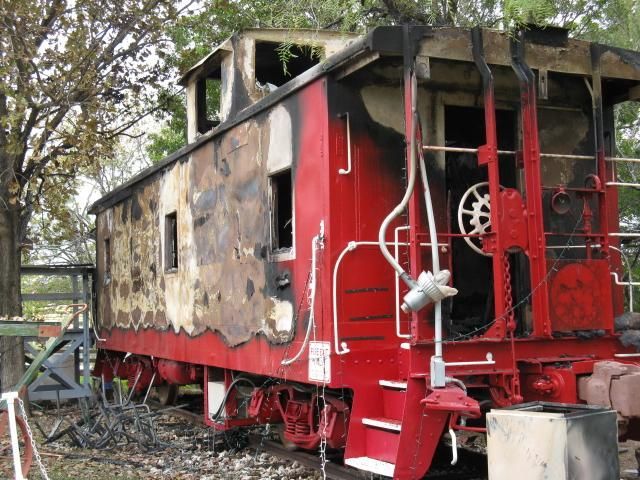 As mentioned, a fire caused serious damage to this caboose in the wee hours of the morning in late 2009. It was caused by smoldering insulation ignited during the finishing touches to a project to replace the rusty bottom edges of the exterior steel walls of the caboose. While the caboose looked bad, structurally it was unaffected and work to refurbish it was soon begun. A brighter interior, better lighting and a more efficient heat and A/C system has been installed. Pictures of the restoration as work progress follow below.