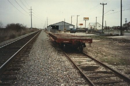 Missouri Pacific flat car 50043 with its latest paint scheme, May 2016