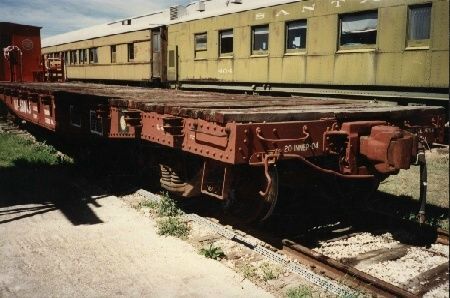 Flat cars are perhaps the most ubiquitous, least glamorous and most utilitarian form of freight car in railroad service. They provide an unobstructed flat surface for any kind of load that does not require a more specialized type of rail car. Such cars are still in frequent use today on all the major railroads. A slightly evolved type carries standard sized metal containers which revolutionized freight transportation, allowing the same container to be moved from truck to train to ship without its load being disturbed. If you look carefully you will see that some container cars have decks well below the level of the frame, allowing the double stacking of containers under almost all bridges.