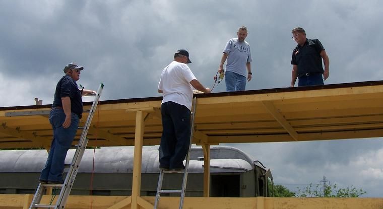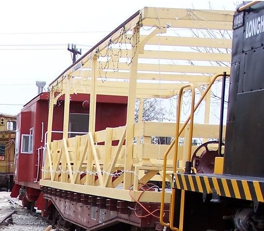 The 50043 was built in 1937 and is 40 feet long. It was acquired by the museum in the early 1980s and proved to be of great use during the construction of our main line. After that it was only used to spray the tracks for weeds. As our visitor numbers soared and we introduced major public events such as "Santa's Railroad Wonderland" it was decided to convert it for passenger use in 2006. Following the replacement of its original wooden floor, seats were added. It soon became obvious that it needed a roof as well. Our first attempt to allow persons in wheel chairs or with limited mobility to be able to ride the train by installing a battery powered lift did not work out so well but the construction of a ramp has done the trick and now everyone is able to fully enjoy the Longhorn & Western Railroad.