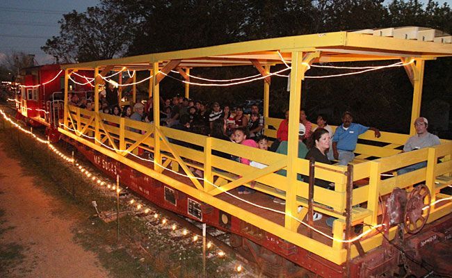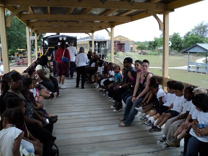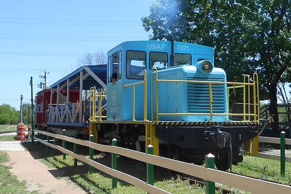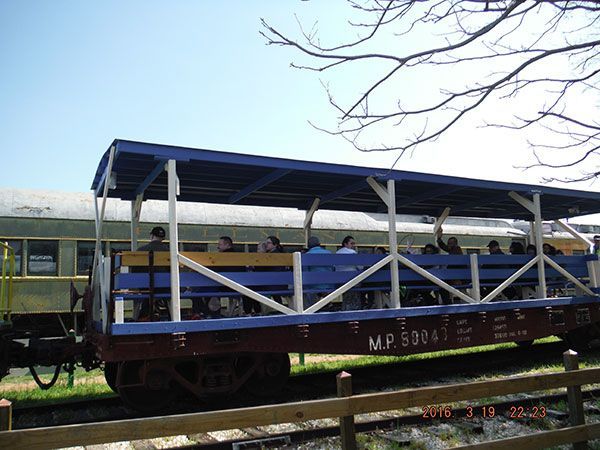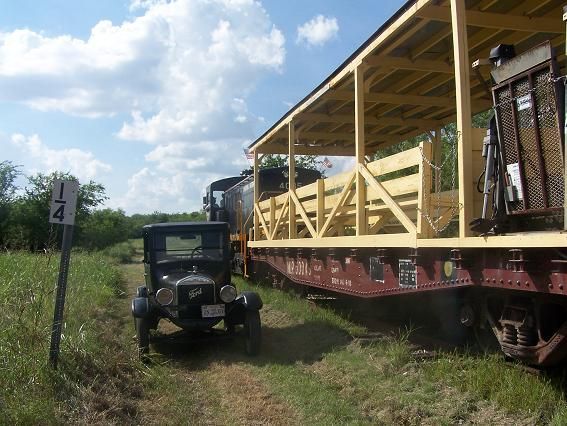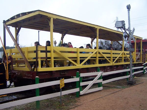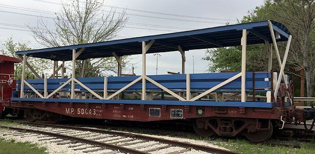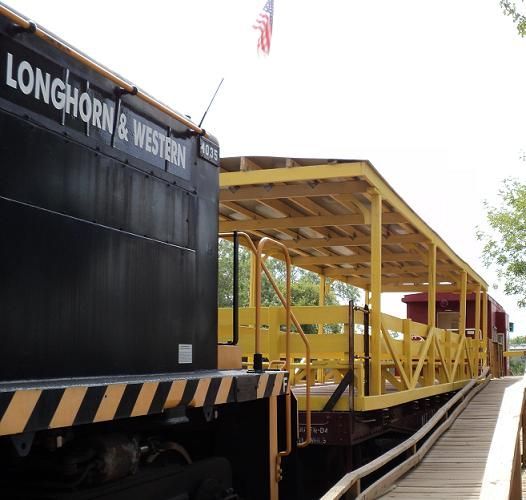 When you think about railroads, you probably first think about locomotives and cabooses. Then maybe the tracks and depots. Passenger and dining cars might come next, followed by box cars and then you'd run out of ideas, even if you got that far. But moving freight is the real purpose of railroads, and there are many different kinds of cars designed to move different products. The simplest of these is the humble flat car. But this one is not so humble anymore! TTM volunteers have turned it into a show piece and it is in constant service allowing people to ride in the open air but still with some shade from the Texas sun. And we built a ramp so folks with all kinds of disabilities can enjoy the fun too.