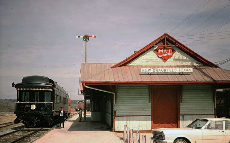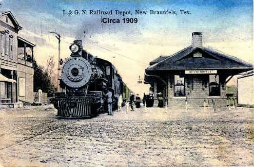 The Missouri, Kansas and Texas railroad built its own tracks from San Marcos to San Antonio through New Braunfels in 1900. In 1881 the I & GN had been leased to the MKT when both were owned and controlled by Jay Gould. Gould lost control of the MKT in 1888 but managed to maintained control of the I & GN. A number of issues arose which made it difficult for the MKT to arrange for trackage right on the I & GN into San Antonio. Also the MKT may have been obligated by the Texas Railroad Commission to build their own line to San Antonio. Construction began in 1900 from San Marcos and the first MKT train to San Antonio on its own tracks arrived on May 1, 1901.