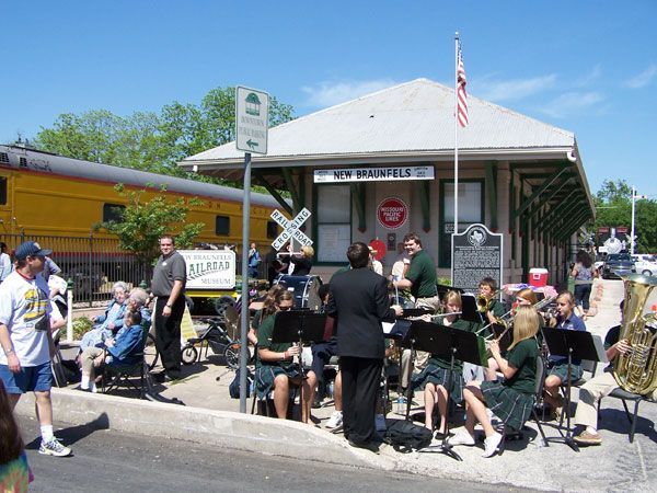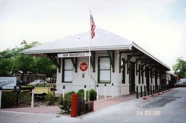 The International & Great Northern built through New Braunfels in 1880. They established their first depot on the main road through town called San Antonio Street. A replacement depot was built in the same spot around 1900. It may have been replaced to signify the importance of the railroad to the community, or raise the prestige of the I &GN now that the Missouri, Kansas & Texas had begun serving the town as well. Or possibly the first one burned down. It was replaced by a masonry structure which is still in its original track side location. After the depot was abandoned by the railroad, it was acquired by the New Braunfels Historic Railroad & Modelers Society in 1986. The society refurbished and restored the depot and have established a very interesting collection of railroad items, including a HO scale model layout, a steam engine, a caboose and a dining car. The museum is open to the public from 12:00 Noon to 4:00 PM every Thursday, Friday, Saturday, Sunday and Monday. Admission is by donation.