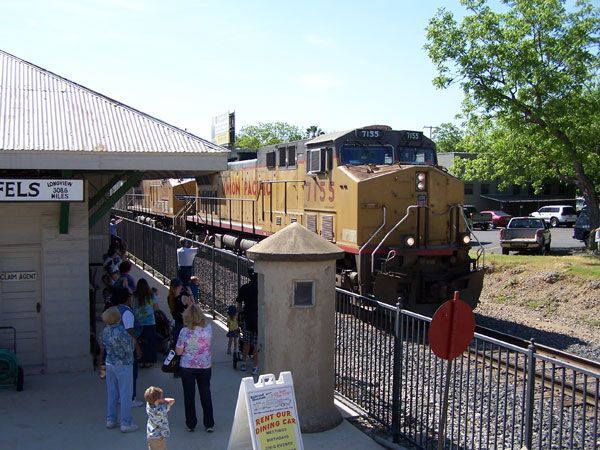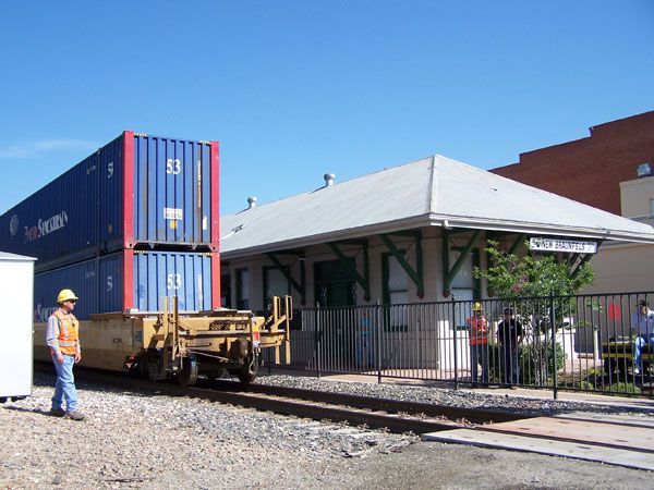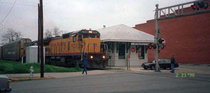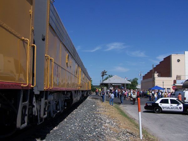 The Union Pacific now owns and controls both the I & GN and Katy lines in New Braunfels. It maintains a crew depot of sorts just a few blocks from the old I & GN depot. This is a mobile office structure on an almost unimproved site. It contains stations for conductors to print out their train orders and manifests, two rest rooms, an eating area and two offices. It is a very unimpressive structure but it is functional in a very low key, low cost way. There are still major quarries in and around New Braunfels. The corridor is very, very busy. The UP does its best to maintain directional running in the area. The I & GN is used for southbound trains and the old Katy for north bounds. Some seventeen miles of Katy tracks were abandoned at one point in and around New Braunfels. As traffic demands grew, the UP decided to re-open the lines, much to the chagrin of some home owners who were disturbed to find what they thought was an abandoned right of way was now very much back in business.
