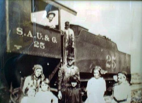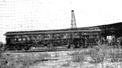 In 1912, hopes were very high at the S.A.U. & G.. On September 16, the first train from San Antonio pulled into Pleasanton. It had started out from the International and Great Northern Depot. The S.A.U. & G., which would soon be given the nickname of "The Sausage," used the I. & G.N. tracks within San Antonio. The train arrived to enormous fanfare at 9:15 AM. On November 19 the first train ran from San Antonio to Carrizo Springs. In 1913 construction of the handsome, two story depot was completed, with the upper level providing space for the railroads offices. On 2/28/1914 train service to Corpus Christi began and the railroad reached its zenith with total trackage of 320 miles. The town of Pleasanton, which had been platted in 1856, experienced a huge population growth. In 1912, only 450 people called it home. By 1914 it had risen to 1,500. The separate town of North Pleasanton was growing by leaps and bounds. (The two Pleasantons would coexist until 1961.) The smaller depot built to serve "original" Pleasanton has survived. It was donated to the city in 1986 by the Union Pacific and was moved, along with a UP caboose, to the Longhorn Museum on HWY 97, between the town and Interstate 37.