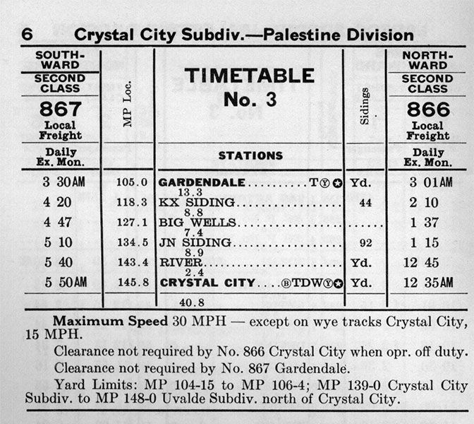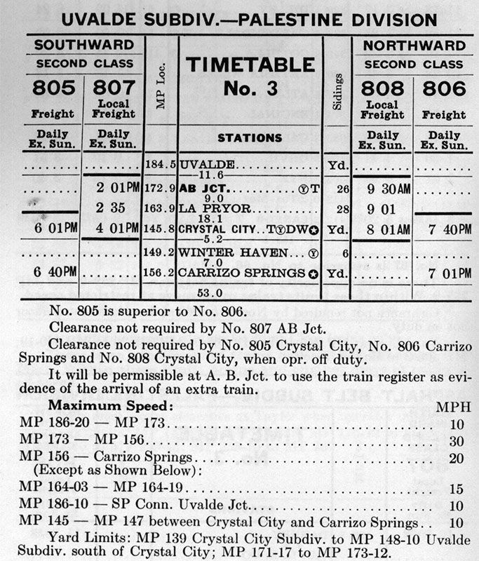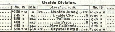 The Crystal City and Uvalde (CC&U) RR is formed, with a connection to the main Southern Pacific line between San Antonio and El Paso