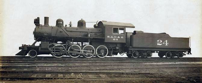 The San Antonio Uvalde and Gulf Railroad was a 320 mile system comprised of three sections. It ran first from Uvalde to Carrizo Springs. Then a line between Crystal City to Pleasanton was added. Finally a line from San Antonio to Corpus Christi that ran through Pleasanton was added. The company began life in 1909 as the Crystal City & Uvalde Railroad. It was started by local entrepreneurs to serve a specific need. It became the San Antonio Uvalde and Gulf in 1912. It's independent existence was brief but significant. And, even after it was taken over by the Missouri Pacific conglomerate, its "original "flavor" survived to the extent that, even today, Union Pacific crews plying the route between San Antonio to Corpus Christi still refer to it as "The Sausage," which is the fond nickname the railroad acquired. In 1925 the S.A.U. & G. became part of the Missouri Pacific's "Gulf Coast Lines." The superiority of the route it used to reach Corpus Christi encouraged the Southern Pacific to down grade its own line to the city, the older "San Antonio & Aransas Pass" route, to secondary status and to lease use on the "Sausage." While most of the line's original route, the lines west of Pleasanton, was removed a long time ago, the remaining sections are in heavy use. The main line to Corpus Christi is still the "Sausage".