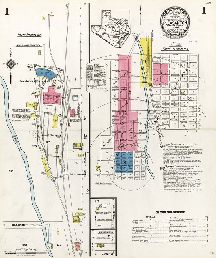 Atascosa County map, depots in Gardendale, Folwerton and Charlotte