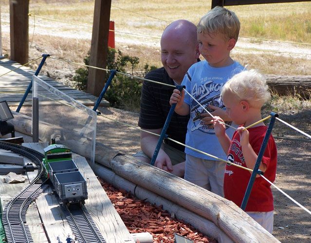 Garden railroading is a hobby with something for everyone in the whole family. We can only scratch the surface of all the activity that goes on at the garden railroad at the museum. You really need to come out and see it for yourself. Parents of young children love it because the kids can run and follow the train around the huge layout. We see an awful lot of sleepy looking kids and happy moms and dads down at SAGRES.