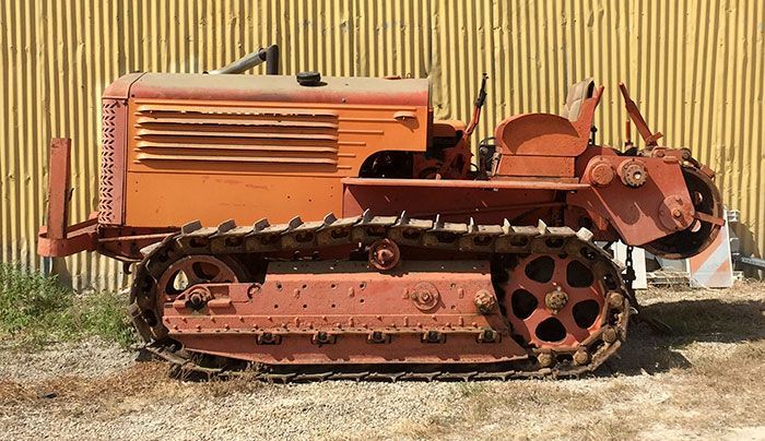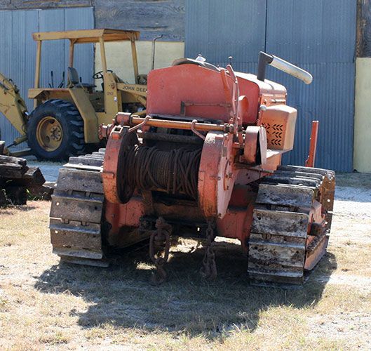 This 1941 Cletrac crawler tractor was acquired by the museum in July of 2017, It was built by the Cleveland Tractor Company. It is powered by a 50 HP Hercules inline 6 cylinder gasoline engine. It weighs 12,500 lbs. It is fitted with a heavy duty winch on the rear and is rated to pull 30,000 lbs, It has a top speed of 4.65 MPH. It cost $3,300 when new, the equivalent of $57,000 in today's money.