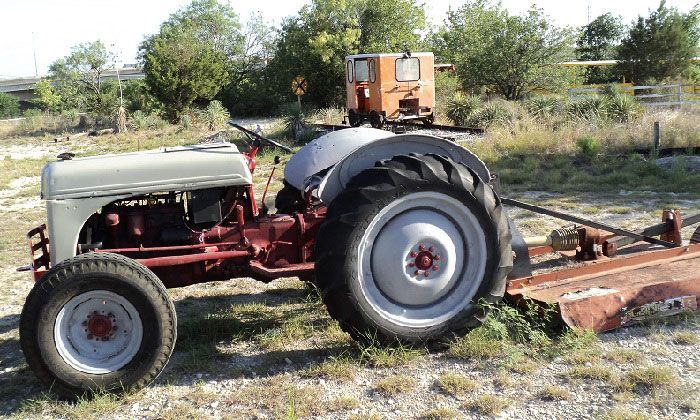 This 1948 Ford 8N tractor is one of the most recent acquisitions at the Texas Transportation Museum. It was acquired with the generous assistance of local lawyer and museum member Anton Hajek. The 8N was introduced as a replacement for the venerable Fordson, one of which a group of local Ford Model T enthusiasts recently found axle deep in mud and which they hope to restore. The 8N will be used both for hard work and play. It can accommodate a brush hog to help keep our large grass areas under control and a box blade for road maintenance. It will also be used at our Halloween and Christmas shows to provide hay rides.