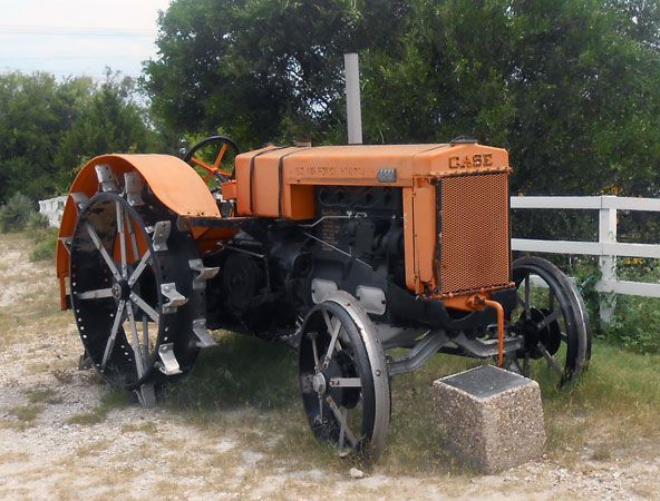 This is a 1939 Case tractor donated to us by the United States Air Force. Tractors like this were used to help prepare and maintain runways and other facilities throughout WWII. We even have a picture of it when it was on display at Lackland AFB. It was prepared for storage very well. When we decided to relocate it, because it's previous, once prominent location had become a shaded picnic area near to a new concrete slab for a future building, the wheels and gears turned freely, despite years of inactivity. This leads adventurous souls to wonder if it could not be got going again.