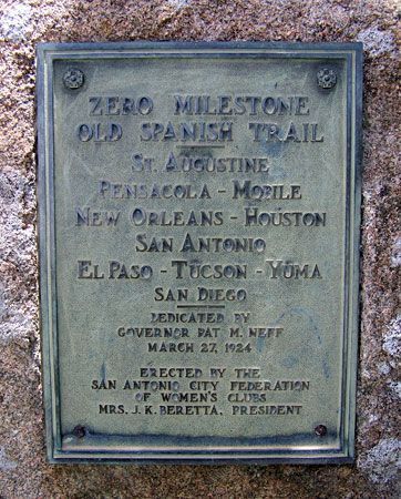 As the 1920s drew to a close, the original dream of a continuous highway across the south, from the Atlantic to the Pacific, was finally realized. Governor Neff dedicated an OST zero milestone outside San Antonio city hall in March 1924. It is still there today. Drivers were supposed to reset their perhaps unreliable odometers for the next leg of the journey at such markers, just as the first intrepid motorists had done twenty years earlier. The first ceremonial drive across the 2,817 miles of continuously improved road, lined with signs put up by each state, began in San Diego, California on April 4 1929. Their arrival in San Antonio was ceremoniously greeted with a dinner at, of course, the Gunter Hotel.