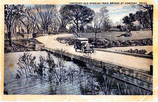 The Old Spanish Trail authorities had a decision to make at San Antonio. Should the route stay close to the Southern Pacific Railroad through Hondo and Del Rio to reach El Paso or should it follow what freighters and stage coach drivers referred to as the high road, via the Hill Country and then through Junction, Sonora and Ozona. Both routes had their merits. The critical factor that informed their decision was simple: money. Kerr County was the first in Texas to sign up as an OST participant. Many of its most prominent citizens including the Schreiner family, who had been instrumental in achieving a difficult rail connection thirty years before, provided significant donations. Among other donors was the Butt family, the founders of the giant HEB grocery chain. The OST followed the “high road” because Hill Country residents were willing to pay to be on the prestigious road.