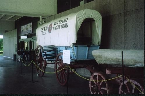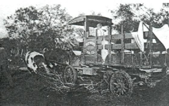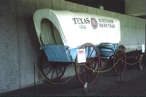 Freight charges from Matagorda bay were 1 1/4 cents per pound. Two types of wagons were used. Mexican 'cartas', large, square, single axled wagons with massive, solid, six foot wheels. Pulled by two oxen, they were slow, but would get through mud and rain. Anglo 'Prairie Schooners', huge, long, two axled wagons, covered with canvas, which were pulled by two horses or mules. They were faster, but more delicate. On a good day, a 'carta' could travel three miles, carrying one bale of cotton.