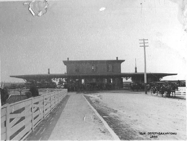 San Antonio & Aransas Pass Railroad (SA & AP) was formed, with it's general offices in San Antonio. A depot is built, at the corner of Alamo and South Presa.