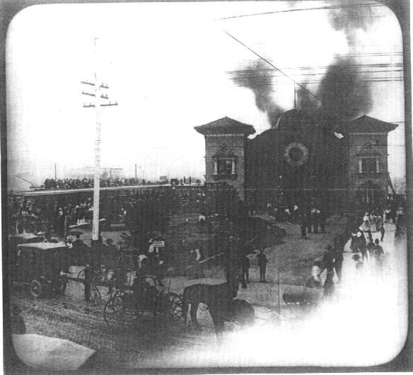 Electric streetcars introduced. Lines run by a different company using different colors and even gauge proliferate. A temporary electric streetcar was set up to deliver visitors to the "International Fair," south of the city center at Riverside Park. One the fairs features was a 'Southern Pacific" day.