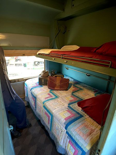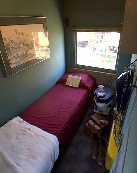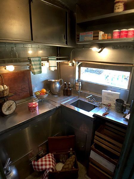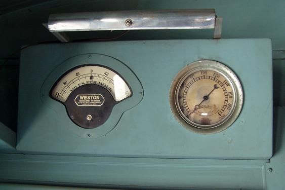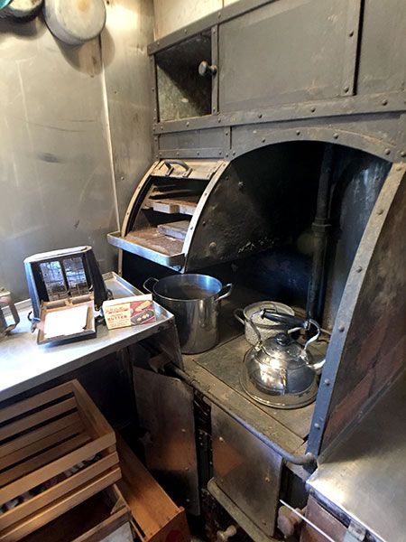 It has an open platform leading to an observation area inside equipped with devices to monitor the confirion of the rails and also the train's speed. The bench seat in this area can be converted into two sleeping berths