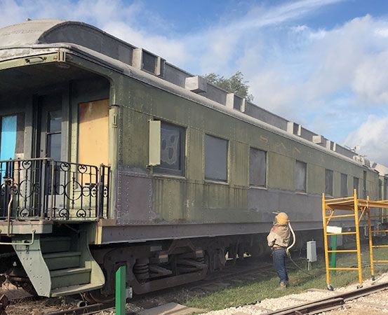 The project to restore the exterior of the Santa Fe 404 Buisness Car was completed in November 2016 thanks to geneorus donations made by Mission Pharmacal and Southwestern Motor Transport. The Texas Transportation Museum is deeply appreciative of their assistance towards presering this historically significant railroad car for the future.