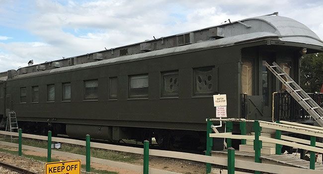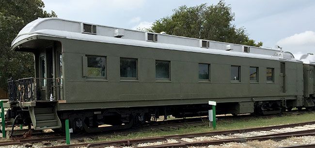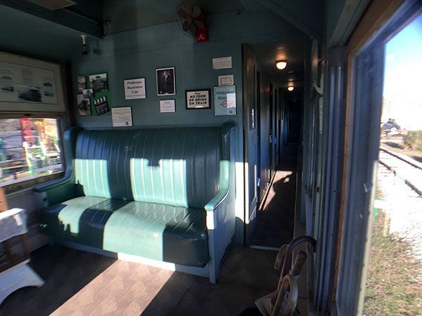 The car is well maintained and is still capable of being moved as part of a train. This was done most recently for a public television documentary where a scene was also shot of a meeting held in the office/dining area. The car continues to receive a lot of care and attention. It's exterior, including the roof and trucks, was painted in the mid 1990s and again in 2016. All the car's windows have been repaired or replaced over the years. The work is mainly done by volunteers but with the generous assistance of local companies especially Mission Pharmacal and Southwestern Motor Transport in 2016.