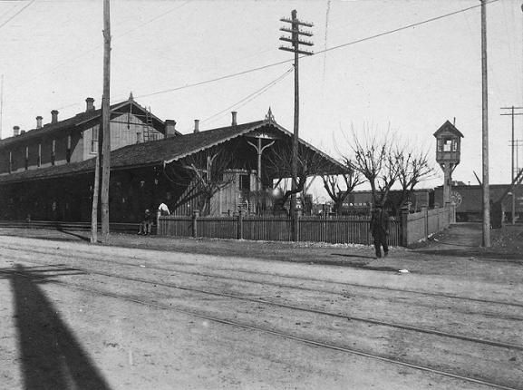 The first Galveston, Harrisburg and San Antonio railroad depot in San Antonio