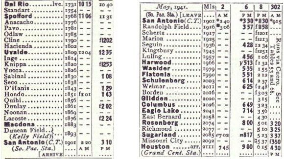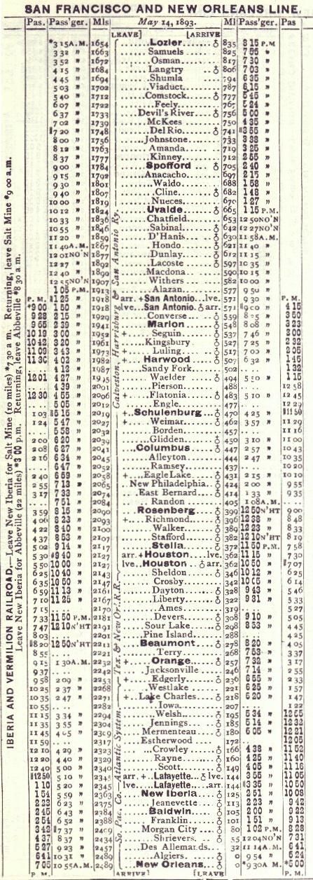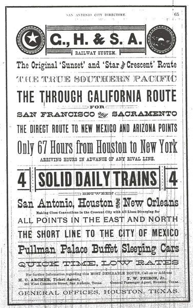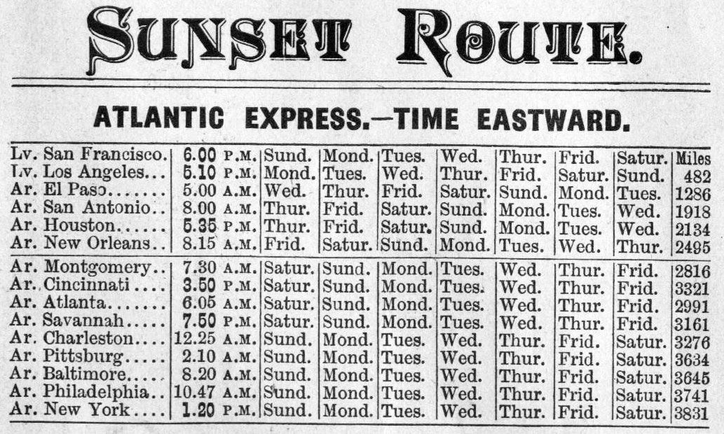 1890, 1893 & 1941 GH&SA timetables, Sunset Limited adverts
