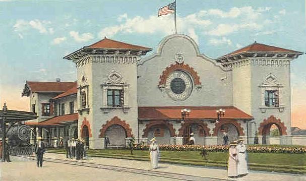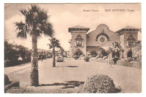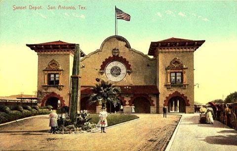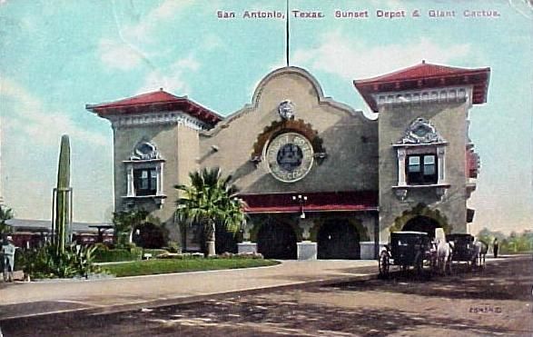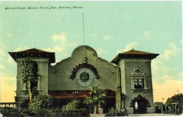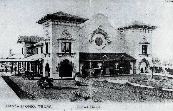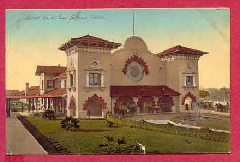 But what a magnificent station had taken its place. From its very first days in 1903, it was simply stunning. It was given the name of the route it served, the Sunset Station. Long before the route through San Antonio reached from Los Angeles to New Orleans, the line was known as the Sunset Route. It was based on a derogatory description of the old BBB&C's Service. It was said that if a person got on board the train in Houston at sunrise, you'd be lucky to get to Columbus on the Colorado rive by sun set. And the SP's logo was most likely based on a doodle by a bored office boy! The very first train to arrive in San Antonio years later in 1877 was already called the Sunset Limited, and the name grew with the route, extending all the way to California. Sunset Station was, and is still is, a masterpiece. Little expense was spared. The fore-runners to today's San Antonio Chamber Of Commerce, then known as the Business Club, supported the new station wholeheartedly. If this was going to be the first major building that many people saw in San Antonio, they would be sure to get a magnificent impression.