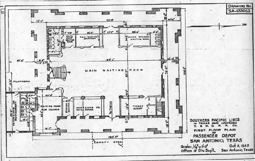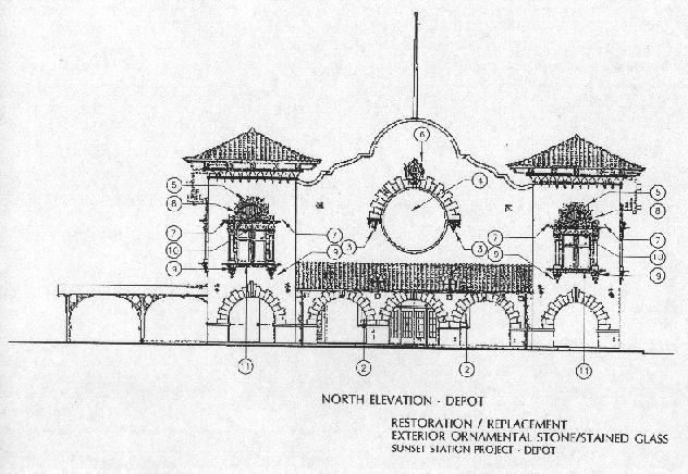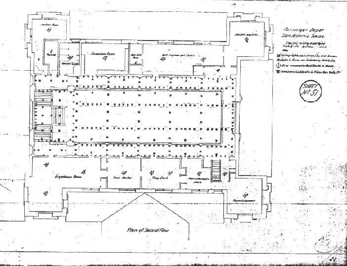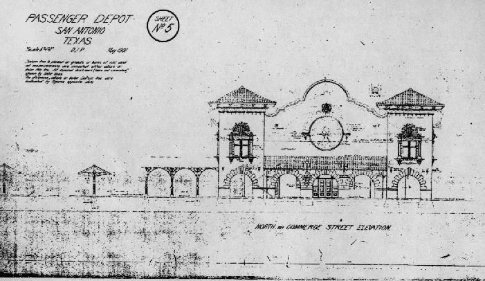 Interestingly, the station was designed by Southern Pacific personnel, not a "hired gun," as was the case with the I & GN / Missouri Pacific and the M-K-T depots. John D. Isaacs, an architect whose official title was Assistant Engineer of Maintenance-of Way for the Southern Pacific Company in San Francisco, California, can take the lion's share of the credit, along with his assistants D.J. Patterson and W.E. Milwain. Isaacs described the building as, "Worthy of note as being the best recent adaptation of the Mission style of architecture to modern requirements." He further stated that the Alamo had been his key point of reference. The station opened to the public on January 31, 1903, following an elongated period of construction that began in November 1901. Difficulties in acquiring all the needed materials for construction hampered progress. The total cost was $115,000.00, which is equivalent to $2,300,000.00 in today's (2002) money.