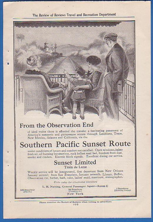 The SP begins operating the coast to coast Sunset Limited train. It later evolved into a 1st class only train. Still going today under AMRAK, it is the oldest continuously operated train in the USA