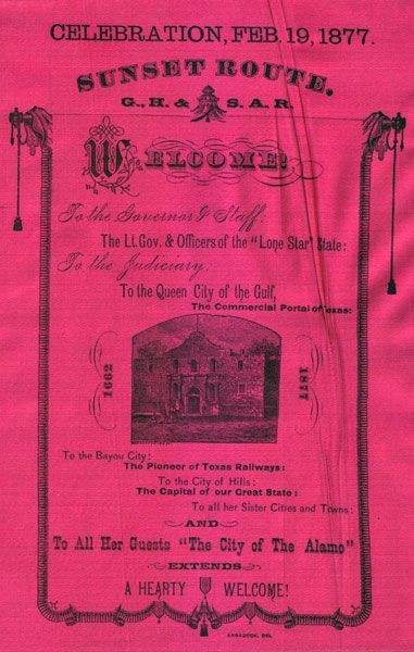 Feb 2. 1st ever railroad train arrives in San Antonio. The GH&SA RR tracks stop at Hays Street