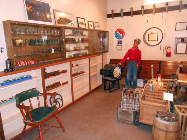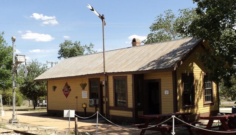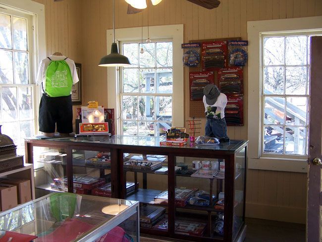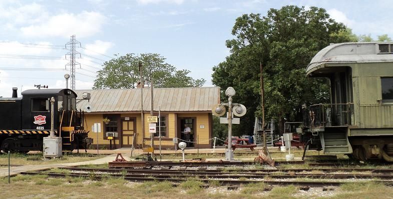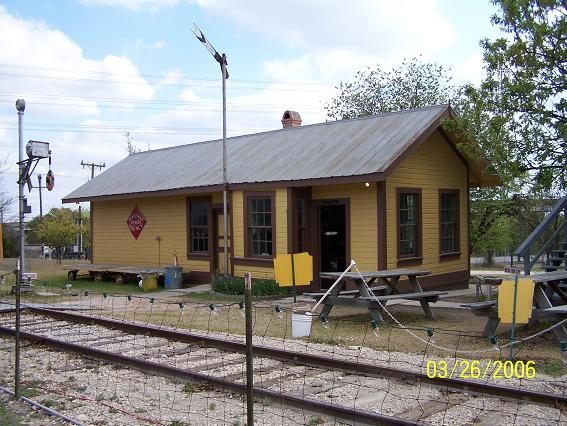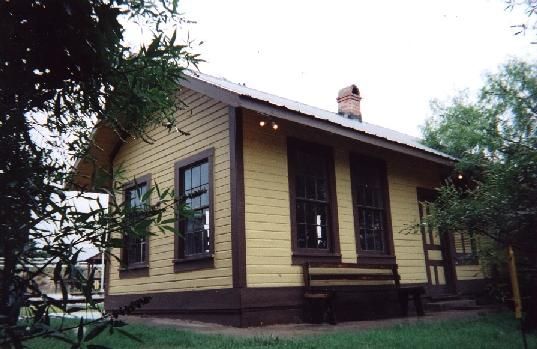 The depot is the first thing you will see when you drive in through our gates. It is also where you buy your admission tickets which include unlimited train rides on our full sized Longhorn & Western Railroad. It is entirely appropriate that this wonderful old depot, saved from destruction in the late 1960s, is the nerve center of the museum. This was the role of small rural depots like this one all around the nation. The station master was a one person community center and chamber of commerce. He kept the trains rolling, greeted passengers, helped them with their luggage and light freight. But he also encouraged local business people and farmers to expand their operations and invited would be entrepreneurs to his district and helped them get situated. The depot also had the most accurate clock in town. Folks would phone the depot from all around the Community on Sunday around noon, to reset the clocks in their houses at "railroad" time. Scroll down the page for more pictures and the story of this particular depot.