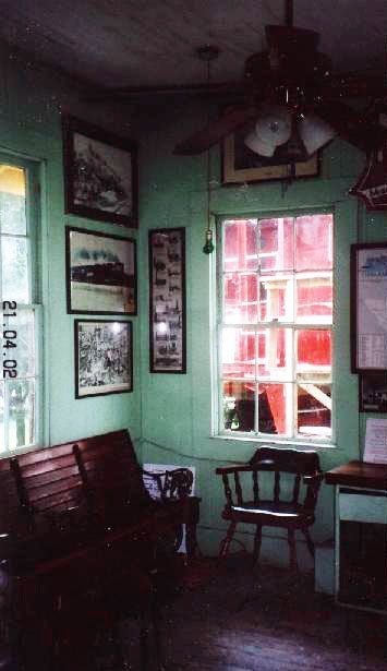 This depot was not the first to serve Converse, a town, named for the Chief Civil Engineer of the Galveston, Harrisburg & San Antonio Railroad, Major James Converse. (The line did not reach down town San Antonio until the next year.) There were two prior structures. The first was almost a temporary building. The second was much more substantial than this one which was built to replace it. The first actual depot was built around 1878. It was much larger and had living quarters not only for the agent but also migrant laborers. The railroad brought in these workers but local farmers were unwilling to have the stay on their cotton plantations overnight so the railroad got into the business of not only transporting the workers but providing accommodation for them as well. It was demolished and replaced with a smaller structure to reduce the railroad's tax burden. The new structure was built, using some of the material from the original building. The bay window seems to originate from the former depot, as do many of the windows. Former carpentry marks and joints can be seen on some of the timbers. Of course not only is there is no dormitory, to further reduce city taxes, there was not even a sink or toilet.
