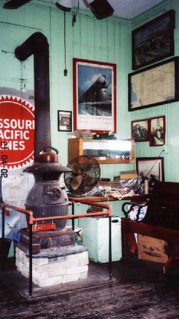 The depot has been a source of pride for the museum and the subject of much attention. It is essentially the same building that was moved to the museum in 1968, and we maintain its original interior and exterior SP color scheme. It has been painted and repainted quite a few times, most recently in 2005. Thanks to the generosity of South Texas Interiors, a local general contractor, both its interior and exterior were extensively refurbished. An air conditioning/heating system has been installed. Even so, especially in the more temperate months, you can still get the experience of waiting for a train as they did in the old days, with windows wide open, antique fan whirring, grateful for every passing breeze.