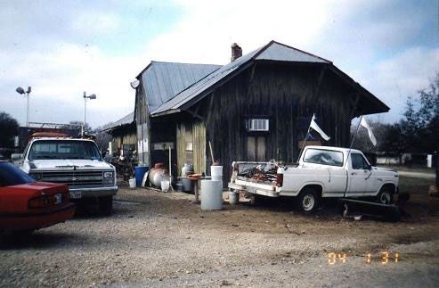 Welfare, just four miles to the south of Waring, never rated a depot as such but the Beseler family, who owned a store, and whose son, Otto, was the first railroad agent in Waring, were big railroad supporters. When they built a large wooden warehouse near the tracks the S.A. & A.P. was happy to provide service. The town swelled to around 275 people around 1900 but that number fell to around 25 by as early as 1925. Today there is not much left except the old railroad right of way and the old Beselr general store which now serves as a Barbecue restaurant. After the Beseler's wooden warehouse burned down it was replaced by a metal structure.