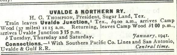 Leona Gray, "The Uvalde and Northern," in "A Proud Heritage: A History of Uvalde County, Texas." (Uvalde: El Progreso Club)